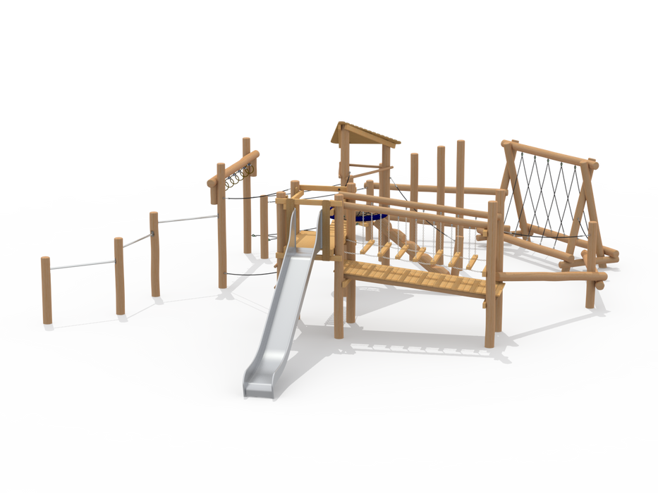 The Explorer's Haven playground is a thrilling multi-activity structure designed to inspire curiosity and adventure. With its sleek slide, climbing ropes, balance challenges, and a rope swing nest, it invites children to explore, climb, and glide in a safe yet stimulating environment. Built with sturdy wooden materials and a thoughtful layout, it encourages physical development and imaginative play for children aged 5-12. Perfect for schools, parks, or community spaces, the Explorer's Haven combines fun and functionality to create memorable experiences for young adventurers!